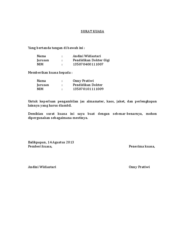 Contoh surat kuasa adalah salah satu contoh surat yang berisikan pelimpahan wewenang dari seseorang yang dapat islakhun ni'mah surat kuasa penjualan mobil. Apakah diantara kalian sudah ada yang pernak membuat surat kuasa?